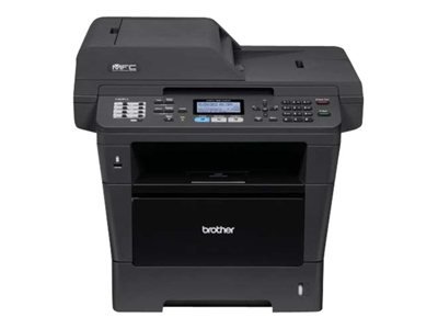 Product Description: Brother MFC 8910DW - multifunction ( fax / copier / printer / scanner ) ( B/W )Device Type: Fax / copier / printer / scannerCopier Type: DigitalFax Type: Super G3 - plain paperDimensions (WxDxH): 19.3 in x 16.3 in x 17.6 inWeight: 36.8 lbsPrinting Technology: Laser ( monochrome )Monthly Duty Cycle (max): 50000 impressionsRecommended Monthly Volume: 500 - 3500 pagesMax Copying Speed: Up to 42 ppmMax Copying Resolution: Up to 1200 x 600 dpiMax Printing Speed: Up to 42 ppmMax Printing Resolution: Up to 1200 x 1200 dpiMax Fax Transmission Speed: 33.6 KbpsData Compression System: MH, MR, MMR, JBIG, JPEGScanning: 1200 x 1200 dpiOriginal Size: Legal (8.5 in x 14 in)/A4 (8.25 in x 11.7 in) (max)Original Type: SheetsDocument Feeder Capacity: 50 sheetsMedia Size: Legal (8.5 in x 14 in)/A4 (8.25 in x 11.7 in) (max)Media Type: Envelopes, plain paper, recycled paper, bond paperStandard Media Capacity: 300 sheetsBypass Feeder Capacity: 50 sheetsOutput Trays Capacity: 150 sheetsAutomatic Duplexing: Yes (copying) Yes (printing) Yes (scanning)PC Connection Availability: YesPC Connection: Hi-Speed USB, IEEE 802.11b, Ethernet 10 Base-T/100 Base-TX/1000 Base-T, IEEE 802.11g, IEEE 802.
