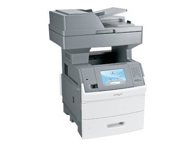 Lexmark X654de - Multifunction ( fax / copier / printer / scanner ) - B/W - laser - copying (up to): 55 ppm - printing (up to): 55 ppm - 650 sheets - 33.6 Kbps - Hi-Speed USB, 10/100 Base-TX, USB host - government GSAThe Lexmark X654de packs more benefits than ever into a high-performance, space-saving multifunction laser. Power up your workgroup with reliable, ultra-fast printing and copying. Boost productivity with superior color-scanning capabilities and efficient workflow solutions. And experience smart, new ways to lower costs while reducing the environmental impact of printing.The Lexmark X654de is equipped with state-of-the-art security to protect your valuable corporate data. It also features customizable user-access controls, allowing you to enable or disable functions with ease.Product Description: Lexmark X654de - multifunction ( fax / copier / printer / scanner ) ( B/W )Device Type: Fax / copier / printer / scannerCopier Type: DigitalFax Type: Super G3 - plain paperPrinting Technology: Laser ( monochrome )Monthly Duty Cycle (max): 275000 impressionsRecommended Monthly Volume: 5000 - 30000 pagesMax Copying Speed: Up to 55 ppmMax Printing Speed: Up to 55 ppmMax Printing Resolution: Up to 1200 x 1200 dpiMax Fax Transmission Speed: 33.6 KbpsScanning: 600 x 600 dpiDisplay: 9"Original Size: Legal (8.5 in x 14 in) (max)Original Type: SheetsDocument Feeder Capacity: 75 sheetsMedia Size: Legal (8.